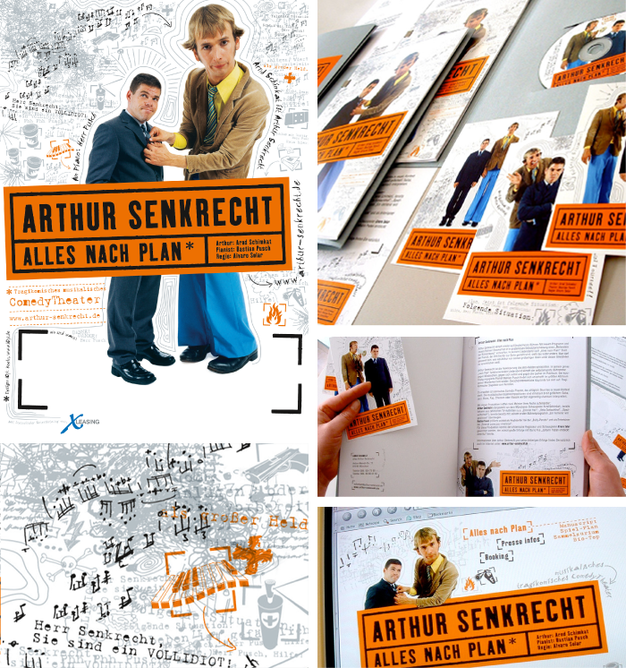 Designkonzept des Erscheinungsbildes für Arthur Senkrechts „Alles nach Plan“-Tour, ein wildes musikalisches Bühnenspektakel, in dem die Komiker Arnd Schimkat und Bastian Pusch - durch alle Emotionen bis hin zur Selbstverzerstörung - Stück für Stück die Bühne in das reine Chaos verwandelten.